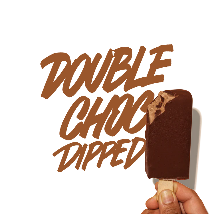 A layer of the best couverture chocolate over our double choc pop. Double choc can’t stop!