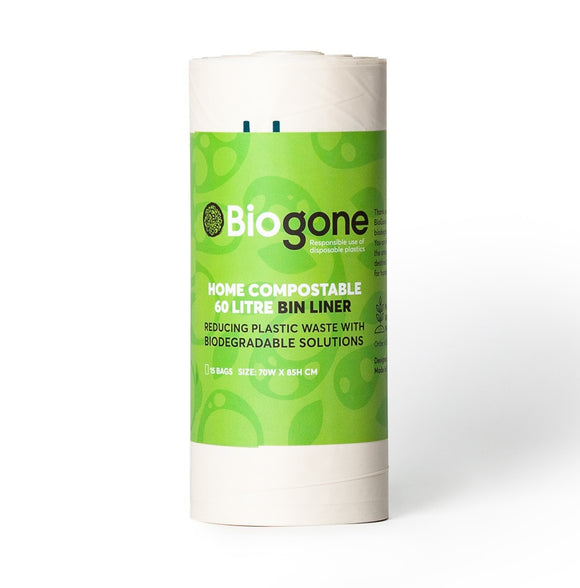 BioGone Home Compostable Kitchen Bin Liner 60L 15pk