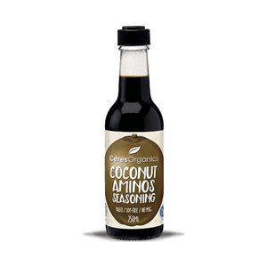 This organic Coconut Aminos Seasoning by Ceres is derived from the sap of coconut flowers and then naturally fermented with a blend of organic herbs and spices to create a delicious 'umami' taste. It serves as a nutritious and paleo-friendly substitute for soy sauce, perfect for dressings, marinades, and even as a dipping sauce.